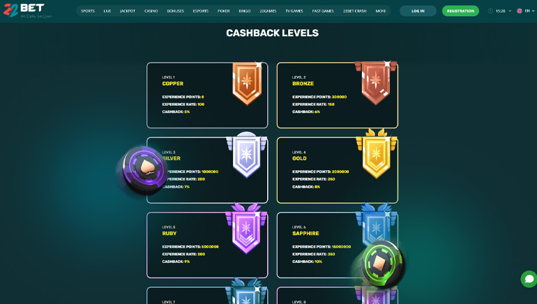 Estrutura inspirada em níveis premium, com forte presença de slots, mesas clássicas e cassino ao vivo.